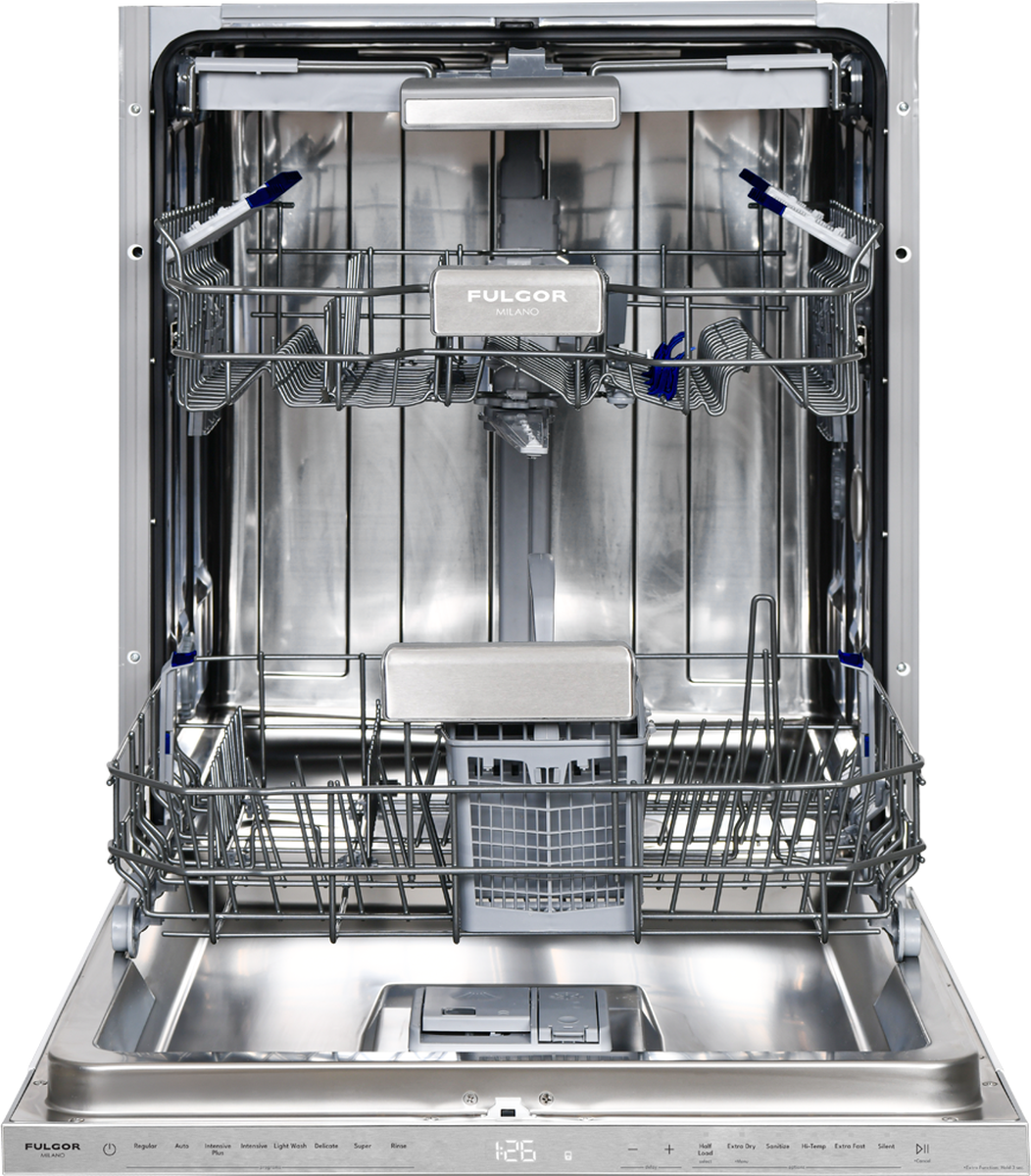 Discover the Fulgor Milano 700 Series 24” Top Control Dishwasher, where form and function create a perfect harmony. Built for modern kitchens, its ultra-quiet 42 dBA operation ensures your home stays peaceful while delivering powerful cleaning performance. Versatility shines with its 3rd rack and smooth slide upper rack, offering flexible space to accommodate every load.Read More