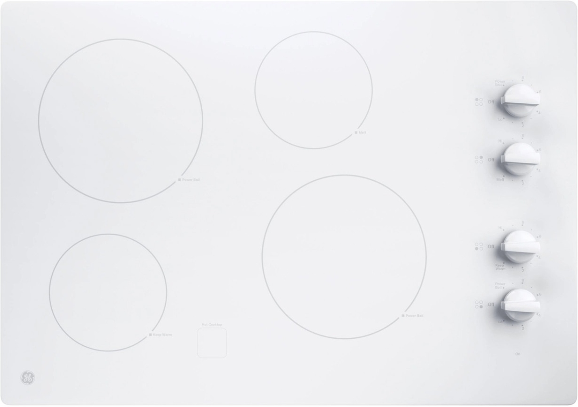 GE® 30" White Electronic Cooktop with 4 burners, melt setting and keep warm settingRead More