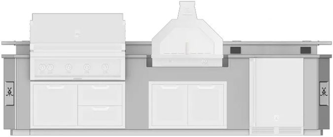 12-foot Outdoor Living Suite with Campania Pizza Oven™ consists of multiple cutouts (appliances sold separately) in a suite to accommodate: 42″ Hestan Built-in Grill, 42″ Hestan Access Door or Drawer/Door Cabinet, 33" Campania Pizza Oven™, 36″ Hestan Storage Drawer, 24″ Hestan Refrigeration Product.
