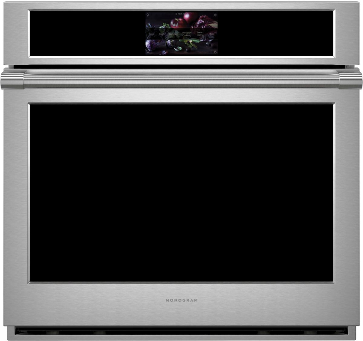 The Monogram Statement Collection edge-to-edge handles, polished stainless steel, and hand-finished edges convey a sense of solidity and beauty. WiFi powered by SmartHQ™ perfectly in sync with a busy lifestyle, Alexa or Google Home can be used to control an array of oven functions from both inside and outside the home.Read More
