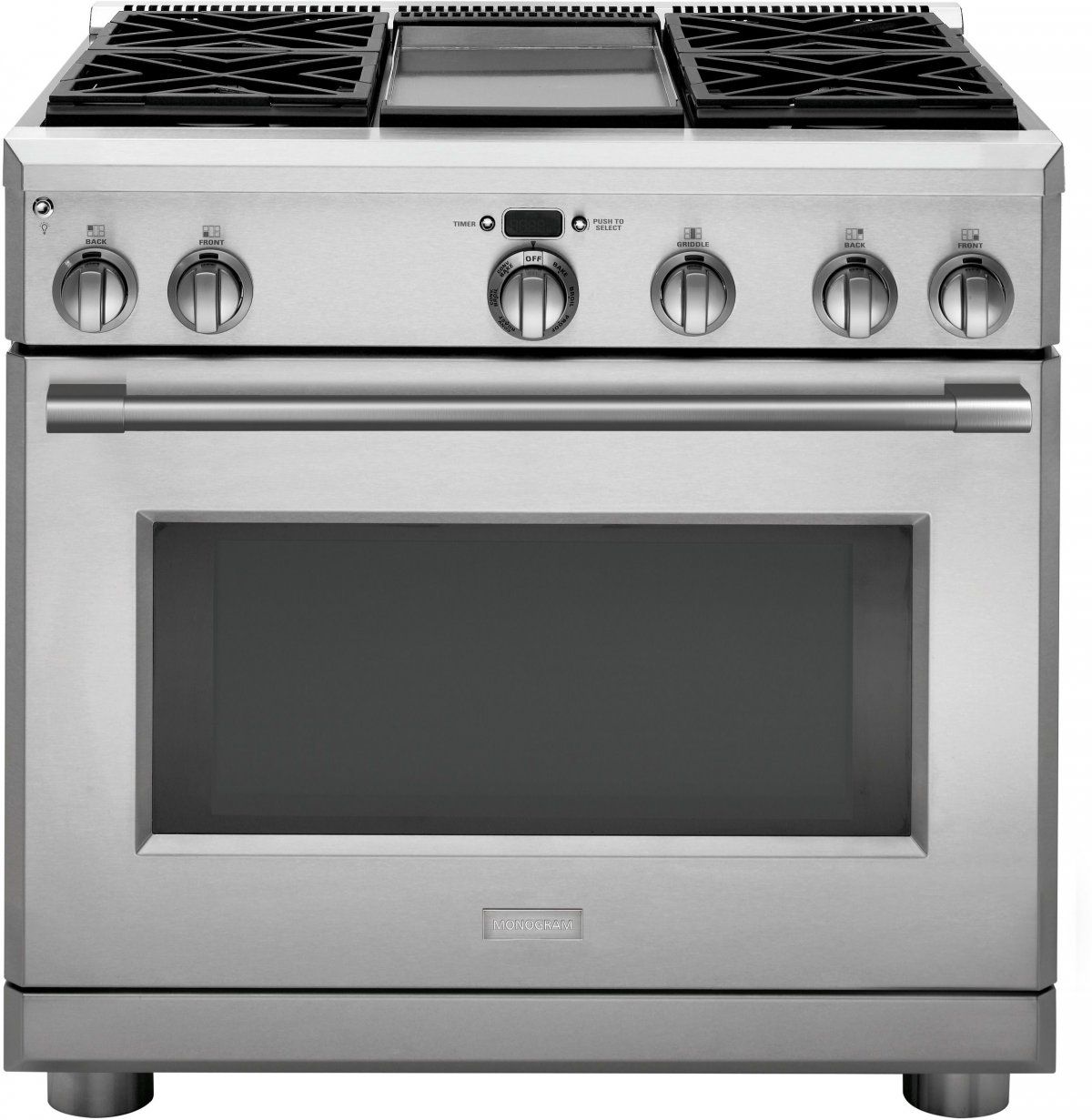Edge-to-edge handles, polished stainless steel, smoothly finished edges and large electronic control knobs offer an authentic professional appearance